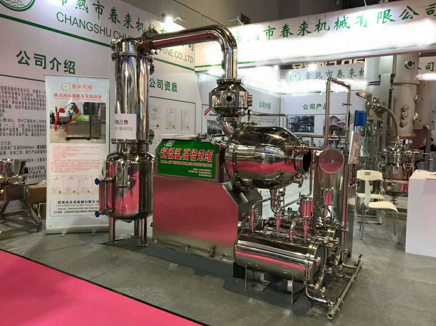 4.17日,常熟春來機械在長沙國際會展中心參加第57屆中國制藥機械博覽會,攜低溫濃縮生產(chǎn)線設(shè)備、三效降膜濃縮設(shè)備、離心刮板薄膜蒸發(fā)器設(shè)備及多功能提取罐設(shè)備閃亮登場,在E2館70展位大放異彩,現(xiàn)場人氣爆棚,引燃全場!